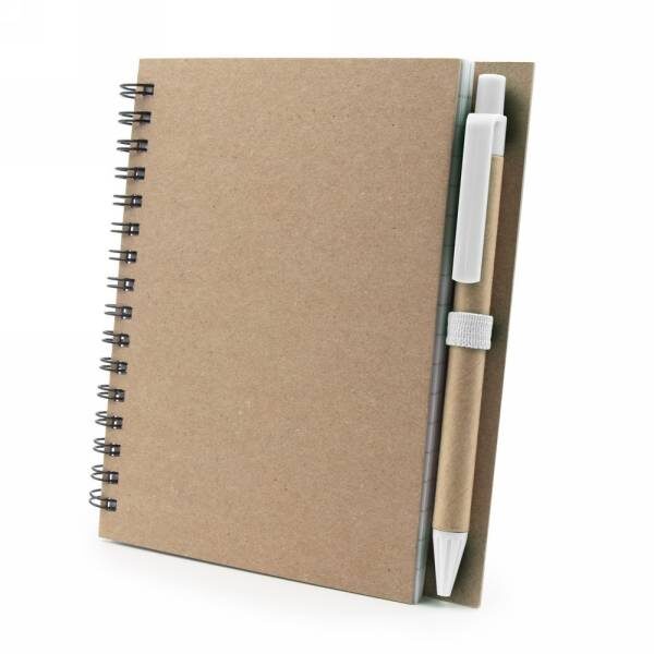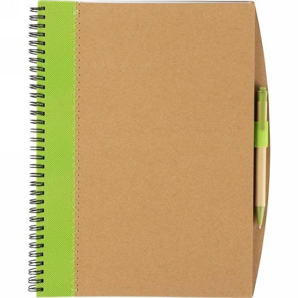 Notebook A6 (50 lined sheets 80 g/m2), hard cover made of recycled cardboard, ball pen with barrel made of recycled cardboard and coloured details included (made in Ukraine)