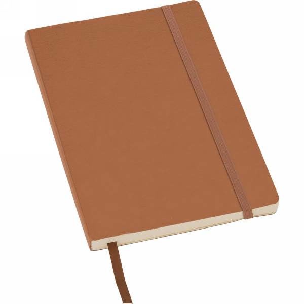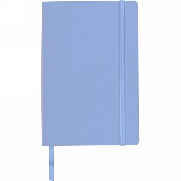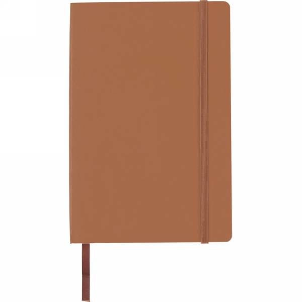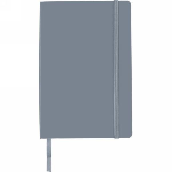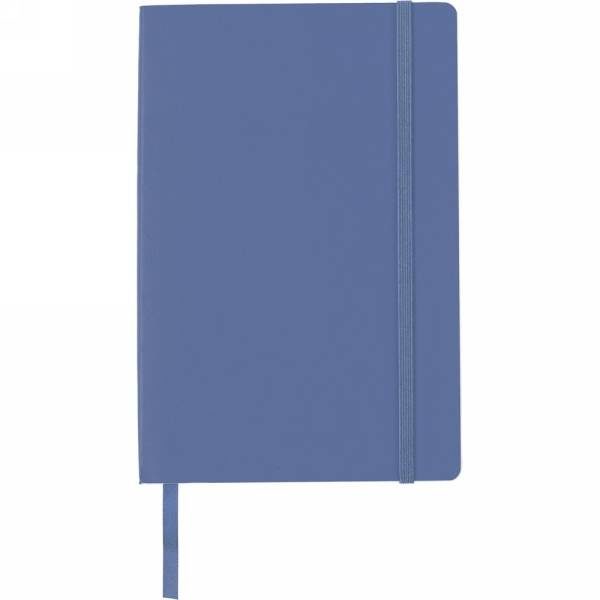 Notebook (approx. A5, 96 lined sheets), matching colour elastic band for closing and ribbon marker