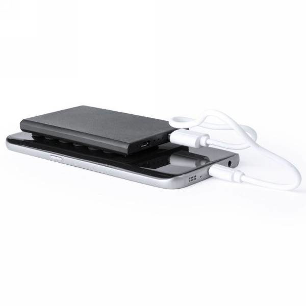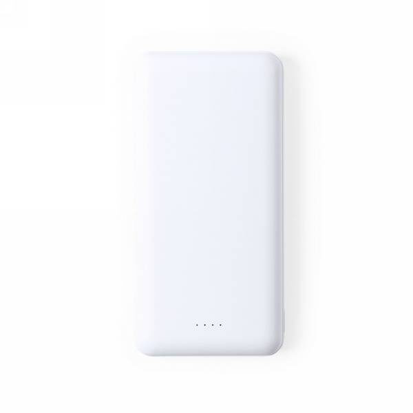 Power bank 10000, 4 diodes indicating power level, 2 USB outputs, input DC 5V/1.5A, output DC 5V/1A, 2.1A, cable included