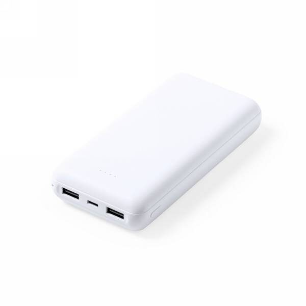 Power bank 20000 mAh, 2 USB outputs and USB type C output, can charge three mobile devices simultaneously, USB type C input, 4 diodes indicating power level, cable not included