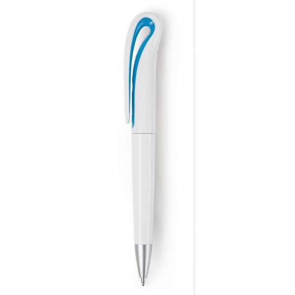 Twist action ball pen with swan shaped clip, registered item