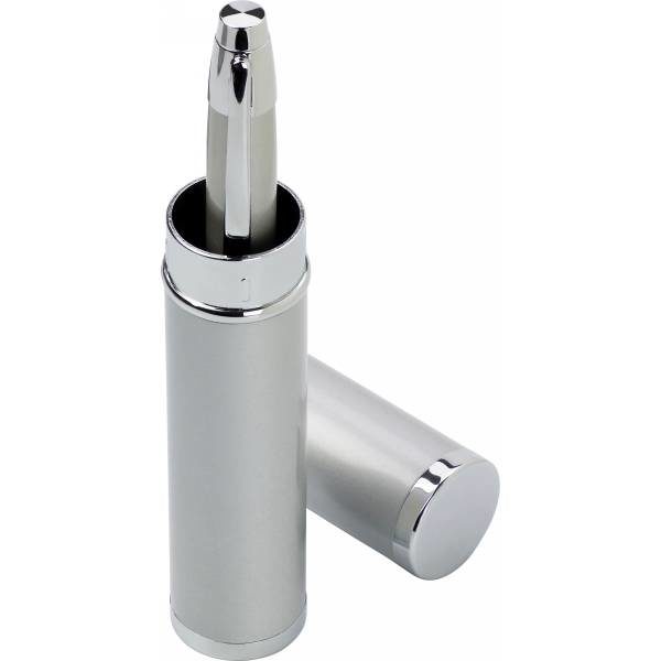 Ball pen with silver trim parts, supplied in matching tube