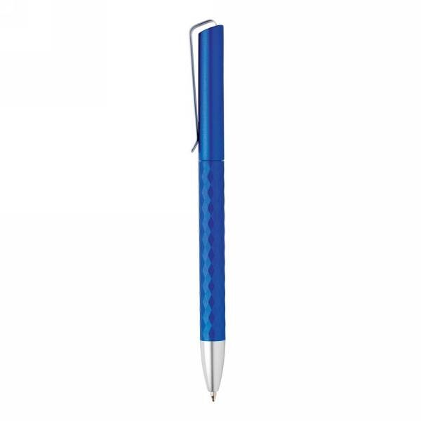Ball pen with metal clip, diamond pattern on shaft, German blue Documental® refill included, writing length approx. 1200 m, TC ball for comfortable writing