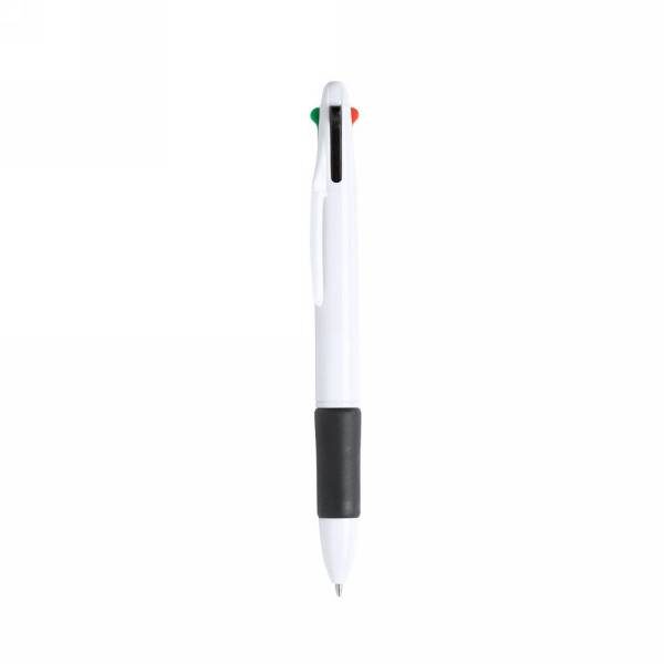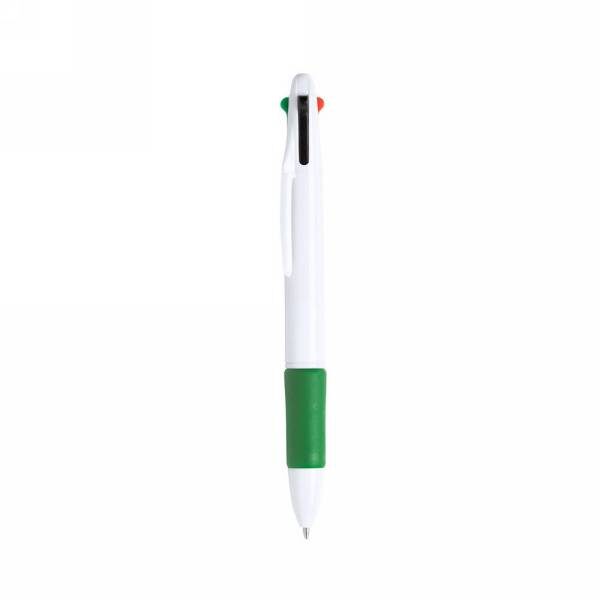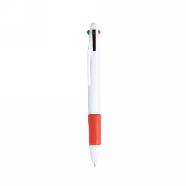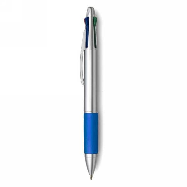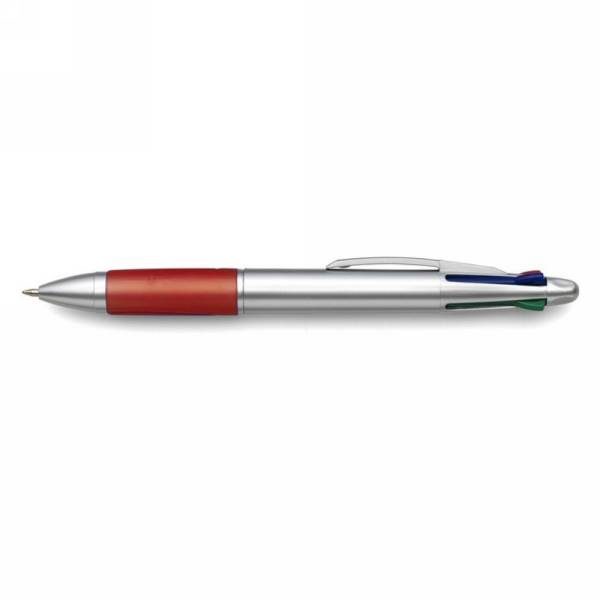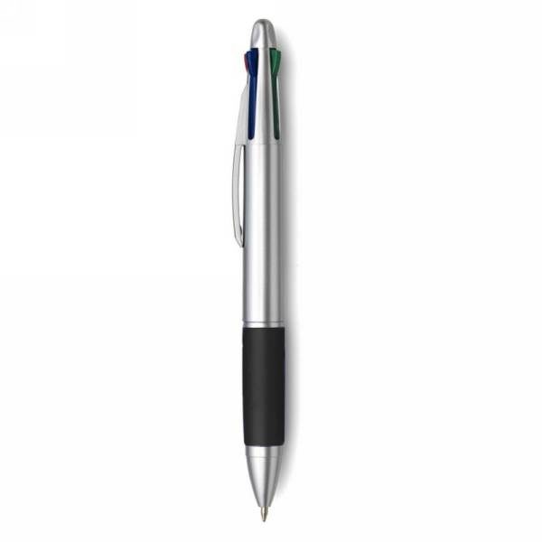 Ball pen with rubber grip and 4 colour ink: red, blue, green and black