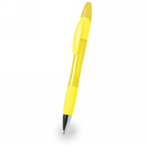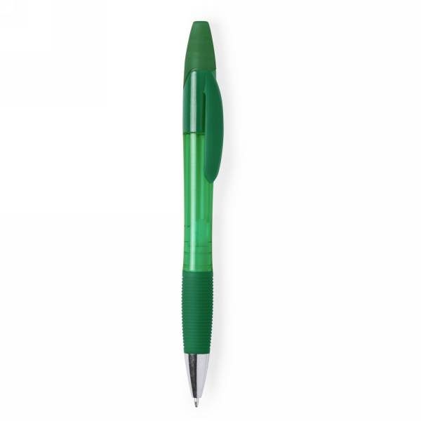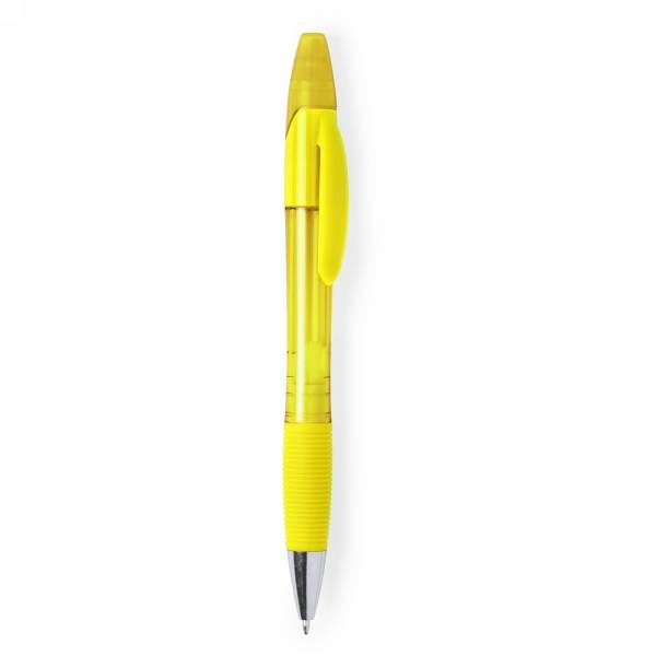 Ball pen with highlighter, barrel colour matches highlighter's colour