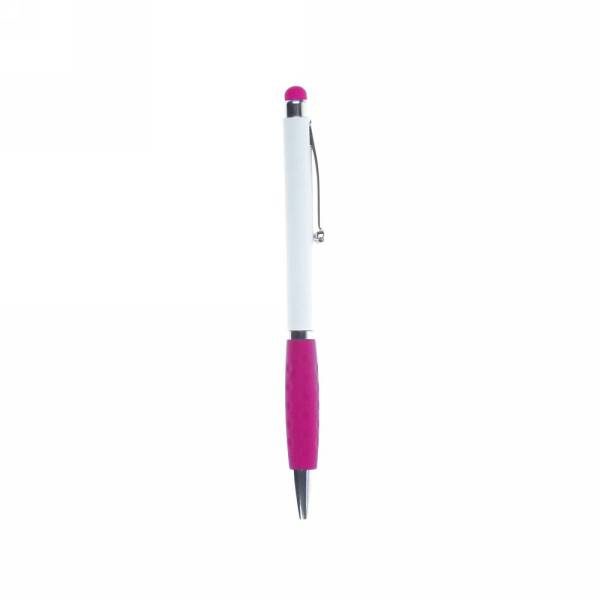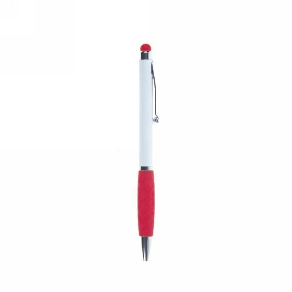 Ball pen, touch pen with white barrel and coloured rubber tip