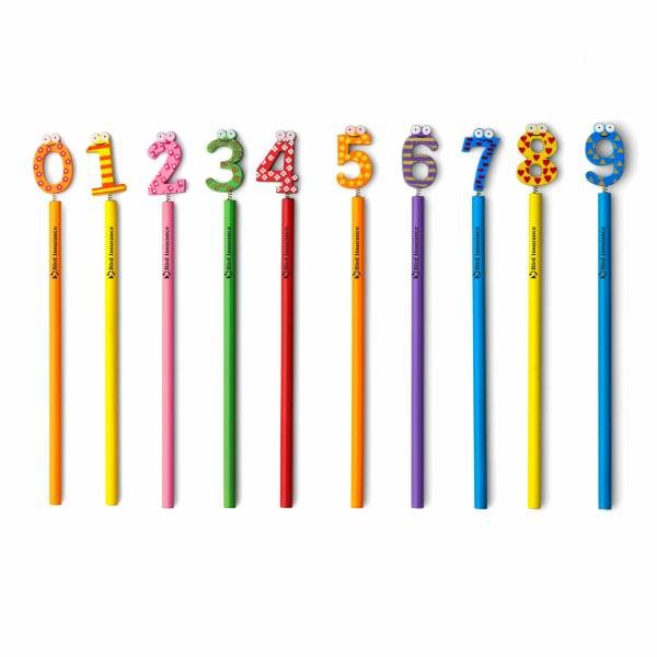 Unsharpened pencil with digits 0 to 9 designs, assorted mix