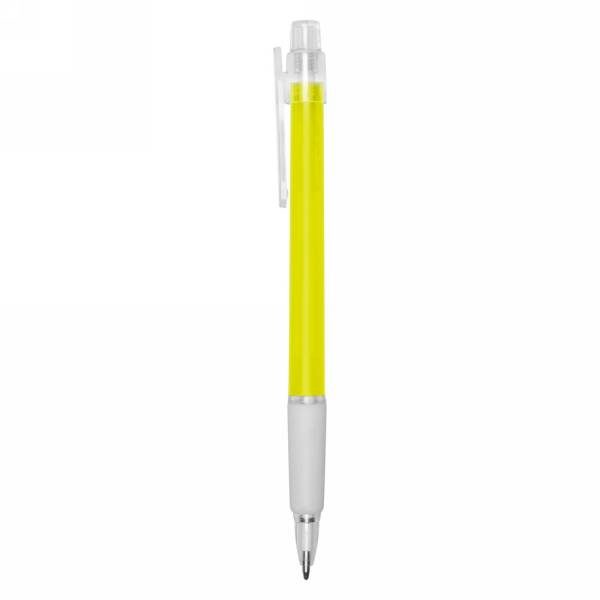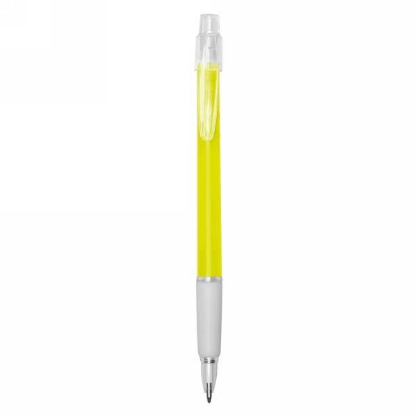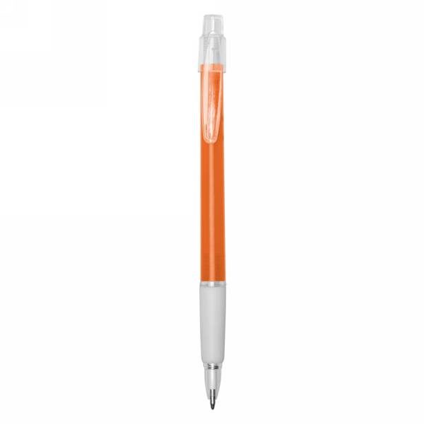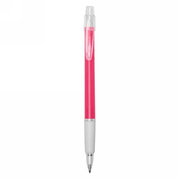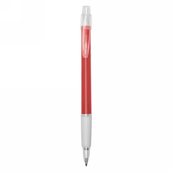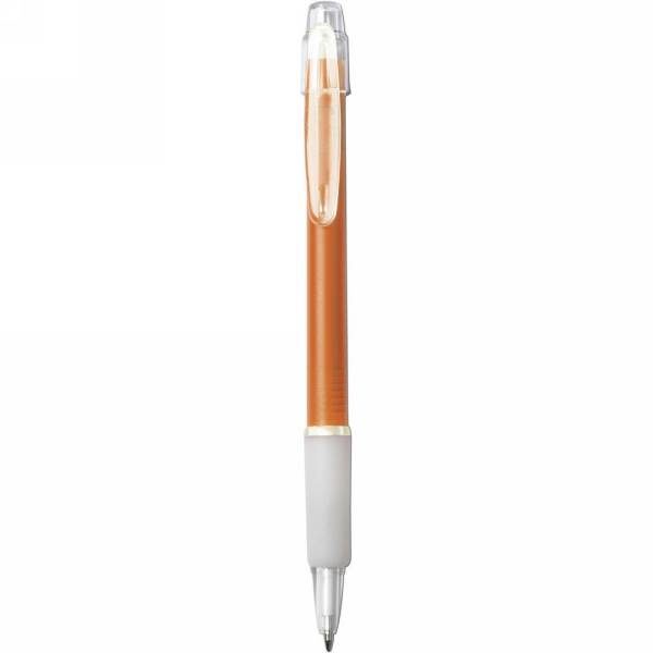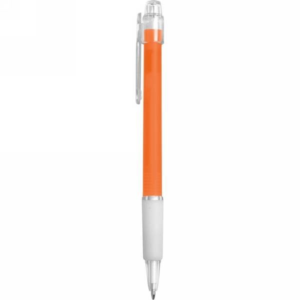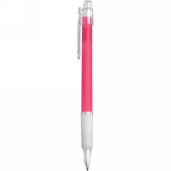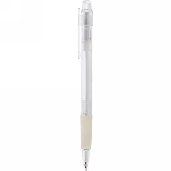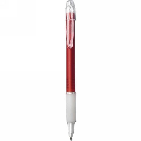Ball pen with rubber grip, coloured barrel and translucent clip