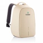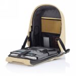 Unique 1680D polyester laptop backpack with two main compartments. One compartment contains a universal storage system to store almost any laptop size. The other compartment has a special storage pocket for your tablet. The front has two zipper pockets ideal for storing your smaller valuable belongings including a hook to hang your keys on.