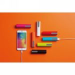 Compact and portable ABS powerbank with 2200mAh lithium battery. Output 5V/1A and input 5V/800mA.