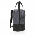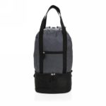 This two tone 500D polyester backpack has a main compartment for your beach gear and a bottom cooler compartment with space for up to 8 cans. Easy switch to tote bag with the straps.