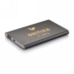 4000mAh aluminium slim powerbank with high quality lithium polymer battery. Including on/off button and remaining capacity indicator. Packed in transparent gift box. Output 5V/1, input 5V/1 A. Including micro USB cable.