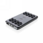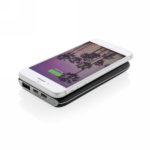 Flat and durable powerbank with 4.000 mAh lithium polymer battery. The powerbank has strong suction pads for a perfect fit with your mobile device and will charge your mobile device without using any cables. Besides using the wireless charger, you can also use a regular USB port or the type C port to charge your mobile device. Output: 5V/2A. Input: 5V/2.1A. Type C input: 5V/2A. Type C output: 5V/2A. Wireless output: 5V/1A 5W. Registered design® Wireless charging compatible with all QI enabled devices like Android latest generation, iPhone 8 and up. Registered design®