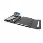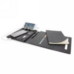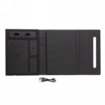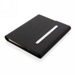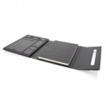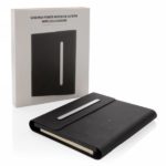 This beautiful power notebook features a sleek and minimalistic design. It contains a notebook with 64 sheets/128 pages cream paper of 80g/m2 for your daily notes and a built in powerbank with 5000 mAh when in need of extra power. The inside features a phone holder and sleeve pockets for your phone, charger and SD cards. The cover has an fully integrated wireless charging pad, suitable for wireless charging for iPhone 8 and up and Android devices which supports wireless charging. Input: 5.0V/2.1A. Output 1: 5.0V/2.1A.