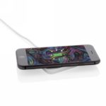 Wireless charger to charge all wireless devices. Smooth ABS surface optimal for an all over digital print. The LED indicator will light up when the device is charging. Compatible with all QI enabled devices like Android latest generation, iPhone 8 and up. Including 50 cm PVC free TPE micro usb cable. Input: 5V/2A; Output: 5/1A – 5W