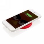 Wireless charger to charge all wireless devices. With silicon ring that prevents your phone from sliding around. The LED indicator will light up when the device is charging. Compatible with all QI enabled devices like Android latest generation, iPhone 8 and up. Input: 5V/2A. Wireless Output: 5V/1A, 5W.
