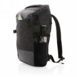 This 900D easy access laptop backpack has all the space you’ll need in a day bag or carry-on. The roomy main compartment has a 15.6″ laptop pocket and a small pocket to hold quick grab items. The big zipper opening makes it easy to see what’s in your backpack at a glance. PVC free.