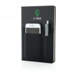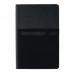A5 notebook with 160 cream coloured lined pages of 80g/m2 inside. Front cover has a flexible phone pocket, pen pocket and larger sleeve pocket for documents. Phone pocket is 8cm wide which fits iPhone 7 plus.