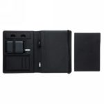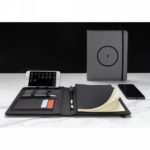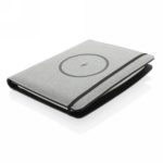 This RPET notebook cover allows you to have your meetings in style. The front cover has a wireless charging pad for your smartphone. (Android latest generations, iPhone 8 and up). Older phones and tablets can be charged via the USB ports from the 5.000 mAh powerbank. Input: 5.0V/2.1A. Output 1: 5.0V/2.1A. Output 2: 5.0V/2.1A.Wireless Output: 5W. Registered design®