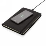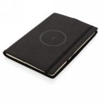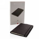 The Air 5W wireless charging refillable notebook cover allows you to charge your smartphone without the cables. Simply put the phone on top and start charging! It comes with a 1 metre micro USB cable so you can easily connect your cover to any power source. The cover is made from sustainable RPET and has an elastic closure. The notebook inside has a black soft PU cover and had 80 sheets/160 lined pages cream colored 70 grams paper. Registered design®