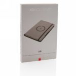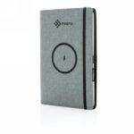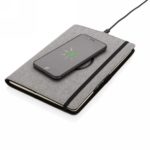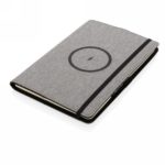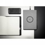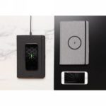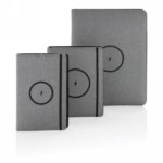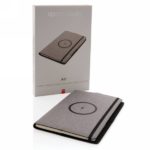 The Air 5W wireless charging refillable notebook cover allows you to charge your smartphone without the cables. Simply put the phone on top and start charging! It comes with a 1 metre micro USB cable so you can easily connect your cover to any power source. The cover is made from sustainable RPET and has an elastic closure. The notebook inside has a black soft PU cover and had 80 sheets/160 lined pages cream colored 70 grams paper. Registered design®