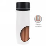 Air Gifts thermo mug 350 ml, copper vacuum insulation, double vacuum walled, stainless steel inside and outside, leakproof plastic lid, easy to use push open/close system, suitable for single hand operation, mat finish, thermal insulation scale: 3 +leakproof