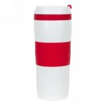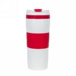 Air Gifts thermo mug 360 ml, with coloured silicone ring, copper vacuum insulation, double vacuum walled, stainless steel inside and outside, leakproof plastic lid, suitable for single hand operation, shiny finish, thermal insulation scale: 2 +leakproof