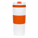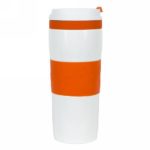 Air Gifts thermo mug 360 ml, with coloured silicone ring, copper vacuum insulation, double vacuum walled, stainless steel inside and outside, leakproof plastic lid, suitable for single hand operation, shiny finish, thermal insulation scale: 2 +leakproof