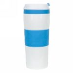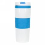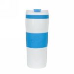 Air Gifts thermo mug 360 ml, with coloured silicone ring, copper vacuum insulation, double vacuum walled, stainless steel inside and outside, leakproof plastic lid, suitable for single hand operation, shiny finish, thermal insulation scale: 2 +leakproof