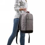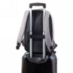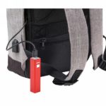 Anti-theft backpack, 13″ laptop compartment, outer zipper pocket at back, several inner compartments, USB port with charging cable (power-bank not included)