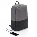 Anti-theft backpack, 15″ laptop compartment, zipped main compartment, many internal pockets, USB connection (power-bank not included), adjustable shoulder straps