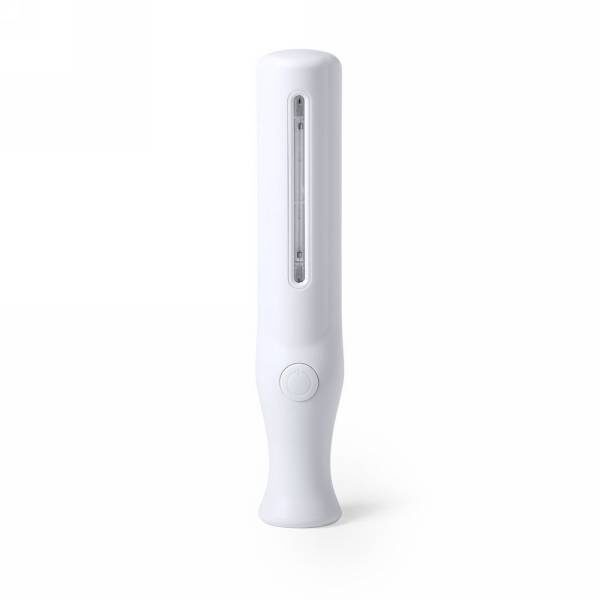 UV-C sterilizer to destroy microorganisms and bacteria from surfaces of daily use objects such as phones, shopping carts, car steering wheel, clothes, etc., 1 UVC light: 1.5W, 2 LEDs, UVC wavelength: 275 nm, LED wavelength: 395 nm, 3V, working distance: 3 cm, exposure time: 30 seconds, USB rechargeable, matt finish, avoid contact with skin and eyes, micro USB cable included