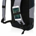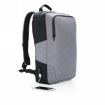 Unique designed 15” laptop backpack with one large main compartment for your laptop and one front compartment. Innovative handsfree suction system on the straps will hold your phone while commuting. Connect your powerbank easily to the integrated USB charging port and charge your phone or tablet on the go. Registered design®