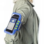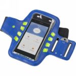 Armband with built in 3 LED lights, 3 lighting modes (steady, fast flashing, slow flashing), mobile phone case (max. 7 cm wide), velcro close