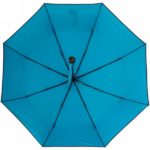 Automatic, foldable umbrella, 8 panels, metal frame, fibreglass ribs, plastic handle, velcro closing, sleeve included