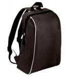 Unique 1680D polyester laptop backpack with two main compartments. One compartment contains a universal storage system to store almost any laptop size. The other compartment has a special storage pocket for your tablet. The front has two zipper pockets ideal for storing your smaller valuable belongings including a hook to hang your keys on.