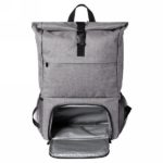 Backpack with main compartment with buckle closure and zipped front pocket, side mesh pocket, padded shoulder straps