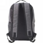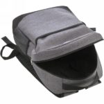 600D 2 tone polyester backpack with fashionable brown details on the handles and zippers.