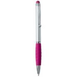 Ball pen, touch pen with silver barrel and coloured rubber tip