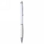 Ball pen, touch pen with white barrel and coloured rubber tip
