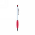Ball pen, touch pen with white barrel and coloured rubber tip