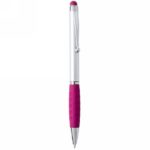Ball pen, touch pen with white barrel and coloured rubber tip