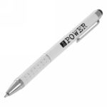 Ball pen, touch pen with black rubber tip, coloured barrel and silver trim parts