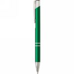 Ball pen with silver coloured tip, two rings and arrow shaped clip