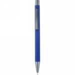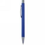 Ball pen with coloured, rubber barrel and grey parts, mirror surface after engraving
