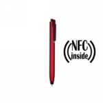 Ball pen with NFC (Near Field Communication) chip, works with mobile devices with NFC technology, touch pen, coloured barrel and silver part under clip. NFC is an international communication standard for wireless data exchange over short distances, e.g. link to the website address can be uploaded to the chip which can be read by mobile device with NFC technology after placing it near to the NFC logo on the product.