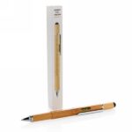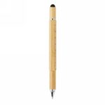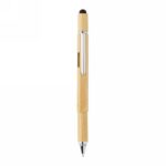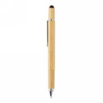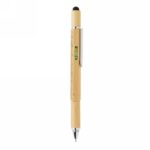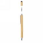 Multifunction bamboo pen with ruler (7cm) , spirit level, screw driver, stylus tip and ballpoint with blue writing ink (up to 400m) Made out of bamboo material with aluminium clip.