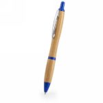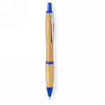 Ball pen with bamboo barrel, coloured parts and silver clip