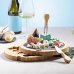 Bamboo cheese set, 4 pcs, cutting board made of slate, removable slate part for easy cleaning