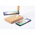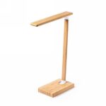Bamboo desk lamp, 25 LED lights, foldable, wireless charger 10W, works with mobile phones with inductive charging function, 3 light modes, USB input, charging cable type C included